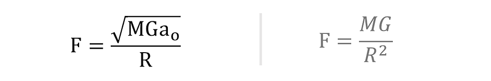 Lo que la teoría MOND sugiere es que la relación del cuadrado inverso, es decir, 1/R^2, se transforma en solo 1/R. Esto no ocurriría a una distancia específica, sino a una aceleración específica, que juega un rol especialmente fundamental en aceleraciones bajas.